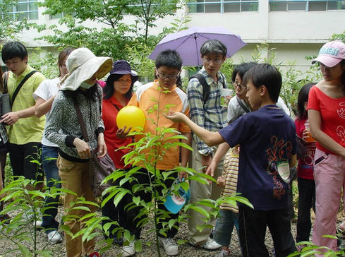 大自然就是我們的「教室」,我們希望透過學校周遭自然環境體驗,喚醒孩子對大自然主動探索的與關懷的精神。透過蝴蝶生態導覽員的養成教育,讓學生從認識蝴蝶、關懷生命,學習溝通與表達的技巧,並在外賓參訪時化身小小導覽員,展現專業導覽的能力與自信。
