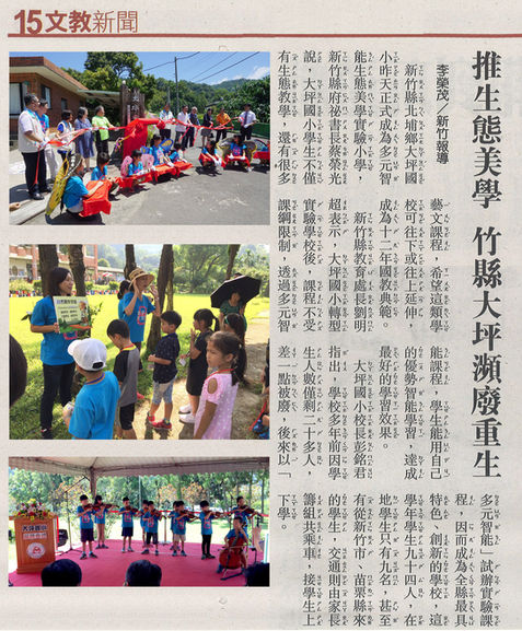 大坪實小親師共同為孩子打造了「新鮮空氣、蟲鳴鳥叫、群山環繞、多元學習」的世外桃源。如您也想給孩子不一樣的童年,請加入我們的行列,讓孩子在大自然環境中成長。透過多元智能課程,為孩子拿到人生第一把關鍵之鑰,贏在起跑點。
